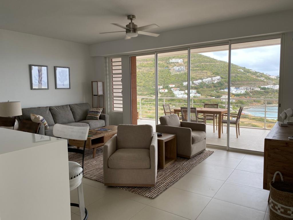 Discover Condo Skol, a stylish 2-bedroom, 2-bathroom luxury vacation rental set within the prestigious Indigo Bay community of St. Maarten. From its elevated hillside position, this residence offers breathtaking views of the Caribbean Sea and the convenience of a modern, open-concept design.